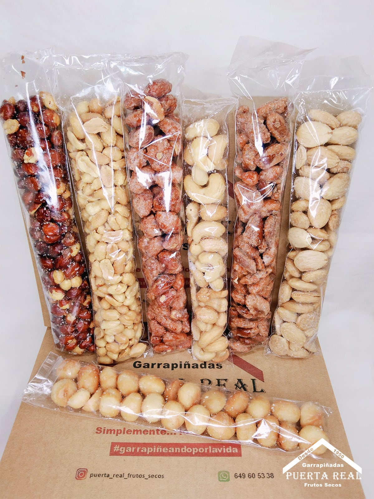 Packaging Basic es nuestro surtido con los productos más vendidos en nuestra tienda, e ideal para un día de partido, película o serie para 2 personas, o bien para un regalo, que garantizamos que no se van a equivocar, ya que contiene tanto frutos secos fritos con sal, ideales para acompañar una buena cerveza o nuestras garrapiñadas más tradicionales, para acompañar, un buen vino o una copa larga.